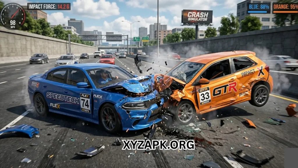 One of the main highlights of the game is its advanced crash physics engine. Vehicles react dynamically during impacts, showing realistic bending, breaking, and deformation effects based on speed and collision force.